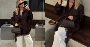 I love how the look is completed with those chic white pointed heels, which add a touch of sophistication. The neutral palette makes the outfit effortlessly classy and incredibly versatile.