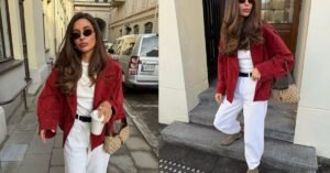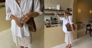 I love how she styled this! It’s so effortless and cool. She really nails that “off-duty” look that we all try to achieve but usually end up looking like we just woke up late, haha. The way the lace peeks out is just so subtle and pretty.