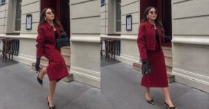 This is exactly the kind of outfit that makes you want to take a million photos before leaving the house. The way the red just pops against a simple background is so satisfying. It just makes the whole picture look curated and fun.