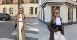 Oh my gosh, this all-white monochrome look is my airport dream! It’s so chic for catching a flight, and I’d toss on a big scarf for that cozy vibe.